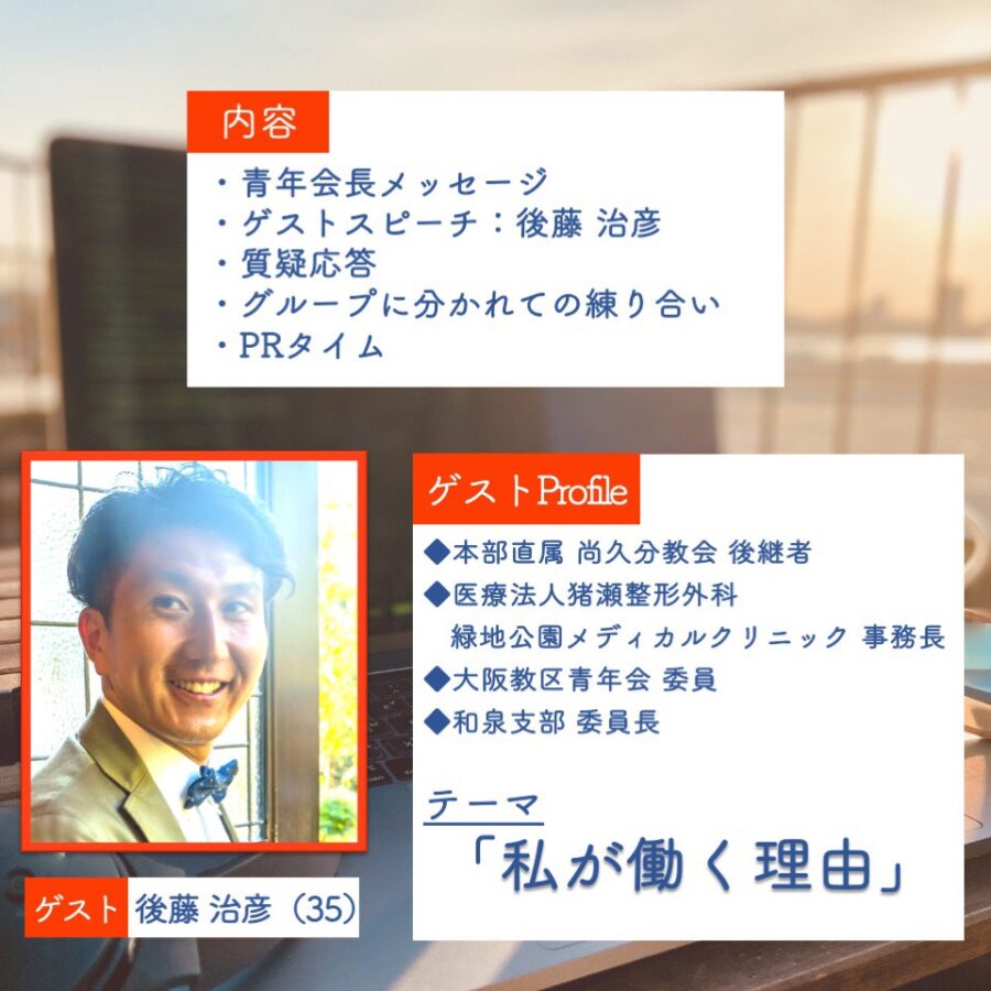 今回のはたらくようぼくの集いは「私が働く理由」というテーマで、メディカルクリニックの事務長としてお仕事をされている、後藤治彦氏にゲストスピーチをして頂きます!!