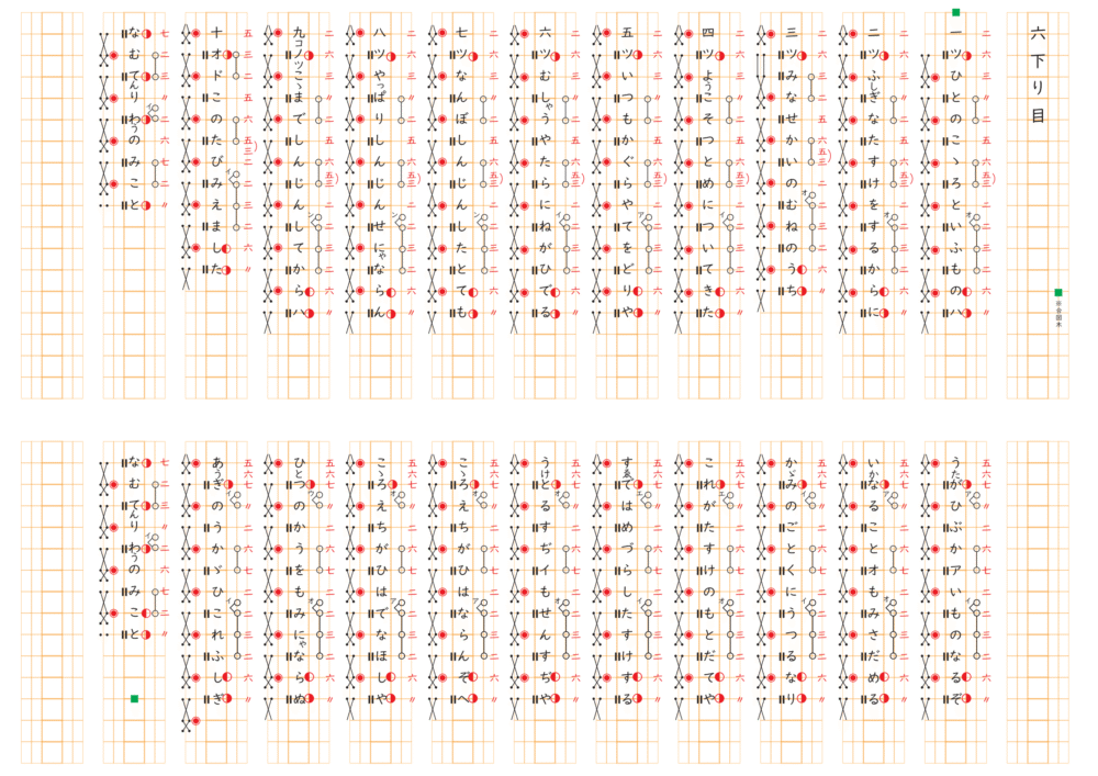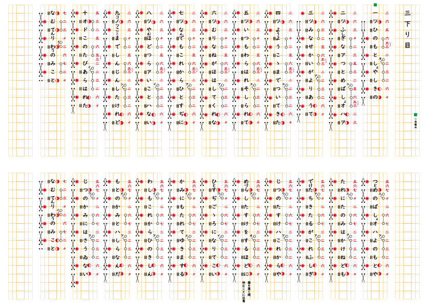 三下り目一つ 「ひのもと」、三つ「 みな」