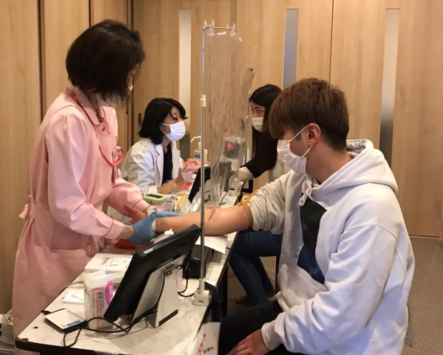 この日は、雨天にもかかわらず55人が協力。大阪府内の献血会場では、その日一番の献血者数を記録した。