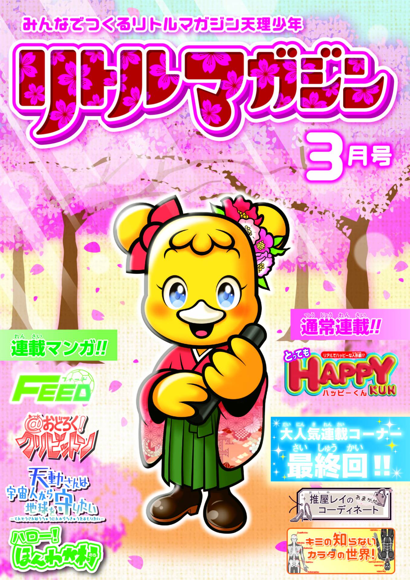 『リトルマガジン』3月号 高橋一朗 2年前 『リトルマガジン』3月号 ☆最終回のお知らせ☆ 「キミの知らないカラダの世界!」 「推屋レイのおまかせコーディネート」 「キミの知らないカラダの世界!」《最終回》どうやってカラダの調和を保っているの? 「@おどろく!クリビットン」《第12話》はちゃめちゃメモリー 「天動さんは宇宙人から地球を守りたい」《第11話》宇宙仁の家 その他のページもお楽しみに!!