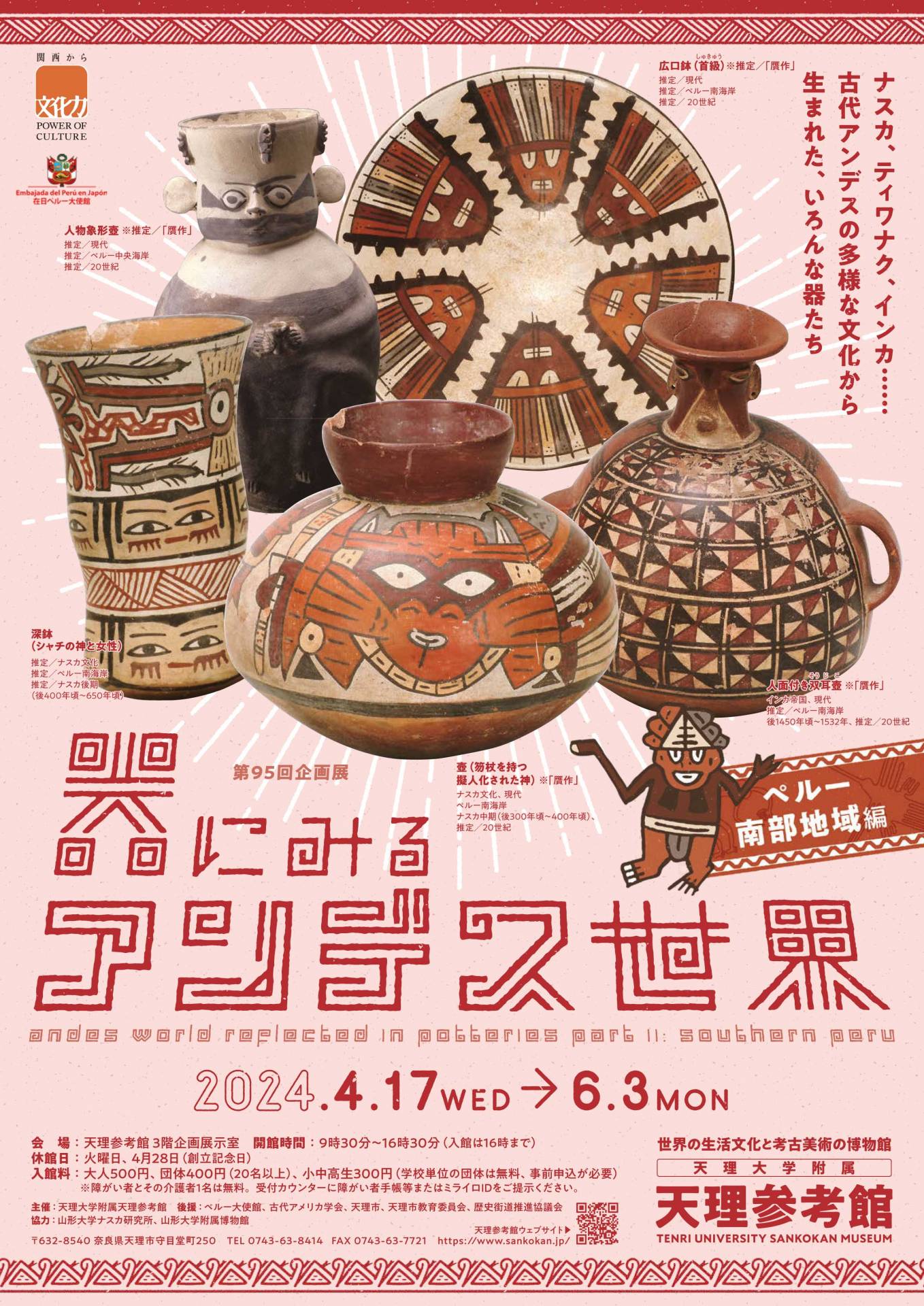 天理参考館 第95回企画展「器にみるアンデス世界―ペルー南部地域編―」 渡辺 2年前 ◆会期:2024年4月17日(水)~6月3日(月) ◆会場:天理参考館3階企画展示室1・2 ◆主催:天理大学附属天理参考館 ◇詳細はこちら