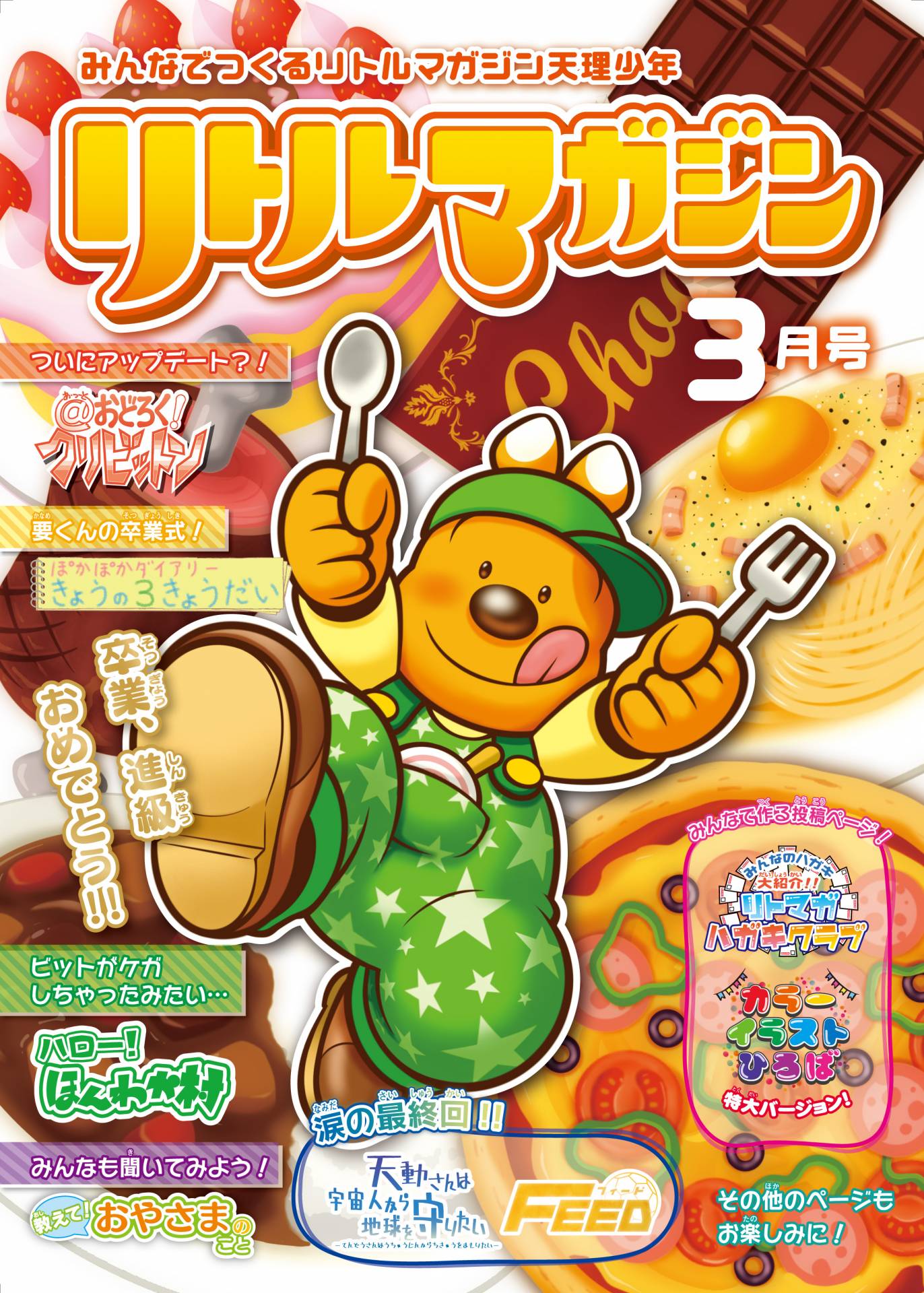 『リトルマガジン』2025年3月号 上田 秋子 9か月前 ☆最終回のお知らせ☆ 「FEED」 「天動さんは宇宙人から地球を守りたい」 2年間応援ありがとうございました!! 「教えて!おやさまのこと」《12回目》つとめ場所の普請のはじまり 「@おどろく!クリビットン」《第24話》なによりプレシャス 「天動さんは宇宙人から地球を守りたい」《最終話》未知との旅立ち その他のページもお楽しみに!!